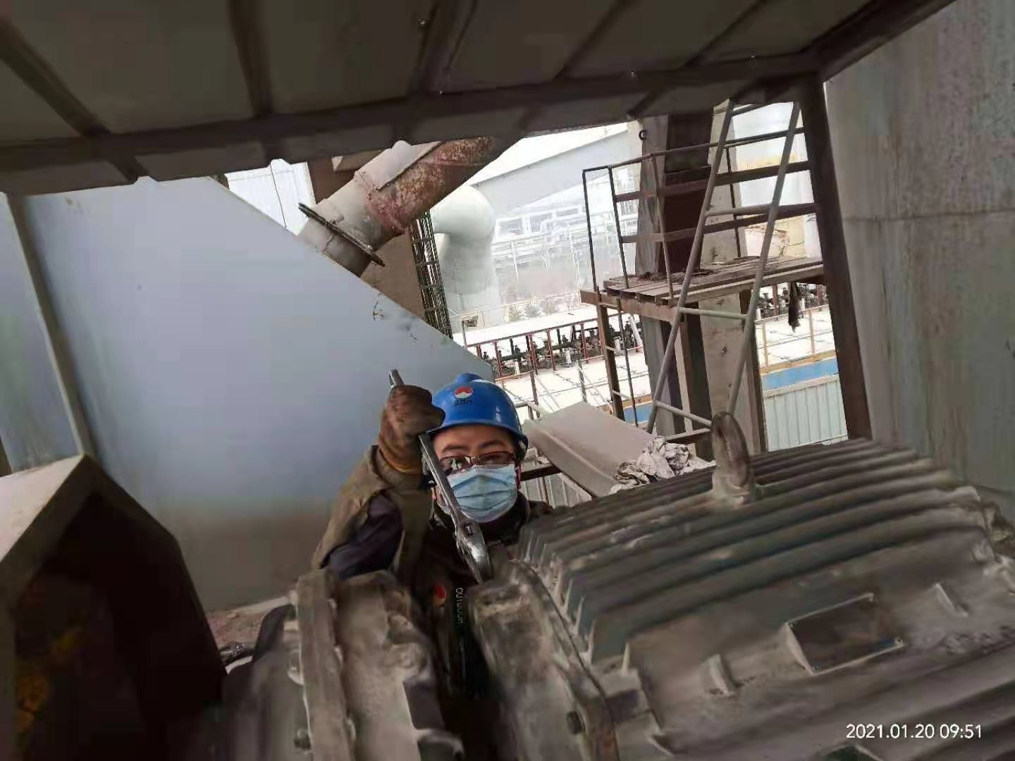 檢修作業(yè)全程跟蹤,一天一夜檢修下來(lái),有睡在辦公室沒(méi)回家的,也有吃飯就在作業(yè)現(xiàn)場(chǎng)……比比皆是?偨(jīng)理吳紅衛(wèi)更是如此,一個(gè)作業(yè)一個(gè)作業(yè)現(xiàn)場(chǎng)轉(zhuǎn)上轉(zhuǎn)下,從2026提升機(jī)作業(yè)點(diǎn)到回轉(zhuǎn)窯主傳減速機(jī),再到篦冷機(jī)、煤磨、烘干破、預(yù)熱器、2301、2323、2401提升機(jī)以及高溫風(fēng)機(jī)、回轉(zhuǎn)窯窯內(nèi)及燃燒器檢修現(xiàn)場(chǎng),指導(dǎo),建議,一直值守在現(xiàn)場(chǎng),忙著跟工人們同時(shí)收工,一整晚都未歸宿就寢室。工人們,裝置長(zhǎng)擔(dān)心他的身體,時(shí)常提醒讓他回去休息一下,喝口水,而他放心、安慰大家說(shuō),“我和大家一樣的心情,早完工,產(chǎn)量就能早生產(chǎn)一點(diǎn),我們后續(xù)生產(chǎn)就能輕松一點(diǎn),大家加油”。一直以來(lái),他和這個(gè)班子成員、工人們一起頂著嚴(yán)寒,一直堅(jiān)守在現(xiàn)場(chǎng)安全履職和協(xié)調(diào)把控檢修進(jìn)度,不厭其煩的一次次的詳細(xì)交底,直到一項(xiàng)一項(xiàng)設(shè)備檢修更換完畢。