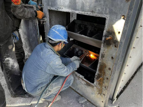 檢修人員有的拆卸,有的清理,有的進行焊接,他們靈活地使用著身邊的各種型號的工器具。配合每個部件的拆卸,不斷小心地變換著他們的動作。每一個起吊都小心翼翼,每一個動作都井然有序。每個檢修項目區(qū)都能看到我們檢修人員的身影。