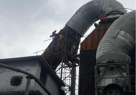 不遠處,檢修人員正在拆卸提升機料斗。他們熟練地操作著各種工具,小心翼翼地將料斗從提升機上拆卸下來。盡管已是金秋時節(jié),他們的臉頰上仍滲出了汗珠。各種工具的敲擊聲、警示語音聲以及指揮口哨聲交織在一起,奏響了一曲獨特的“檢修交響曲”。身著藍色的工裝、頭戴安全帽的職工們在龐大的設(shè)備間穿梭,他們的眼神中透露出專注與堅毅。